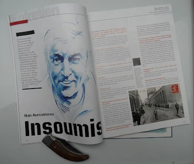 De surcroît, j'ai eu la charge de brosser les cinq illustrations (dont Omar Raddad, Pierre Chanal, Emile Louis) de la rubrique "Un œil sur notre temps", une rubrique rédigée par une talentueuse nouvelliste, la bourguignonne Fabienne Desseux. Par ailleurs, Didier Decoin, que j'ai eu le bonheur d'interviewer récemment, m'a confié à cette occasion avoir apprécié la revue, tant sur le fond que sur la forme. Ce qui n'est naturellement pas pour déplaire à la rédaction du magazine coordonné par l'ami Anthony comme à ses fidèles contributeurs, également pour ce présent numéro : Philippe Grandcoing, Marie-Christine Bessou, Bruno Dehaye et l'excellent Jean-Michel Cosson. "Les Grandes Affaires Criminelles" n°5, septembre-octobre-novembre 2015, 116 pages, 9 euros 50. Dans tous les bons kiosques de France, de Navarre et d'ailleurs, par abonnement également.